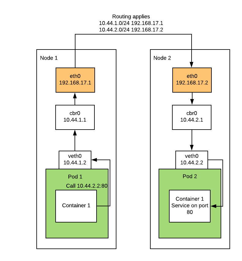 There are two scenarios which I’ll go into more detail to explain how traffic gets routed between pods.