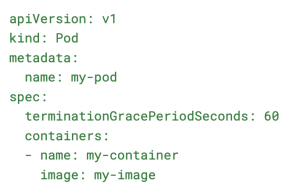 Here’s an example of how to set a custom termination grace period in a Kubernetes Pod specification: