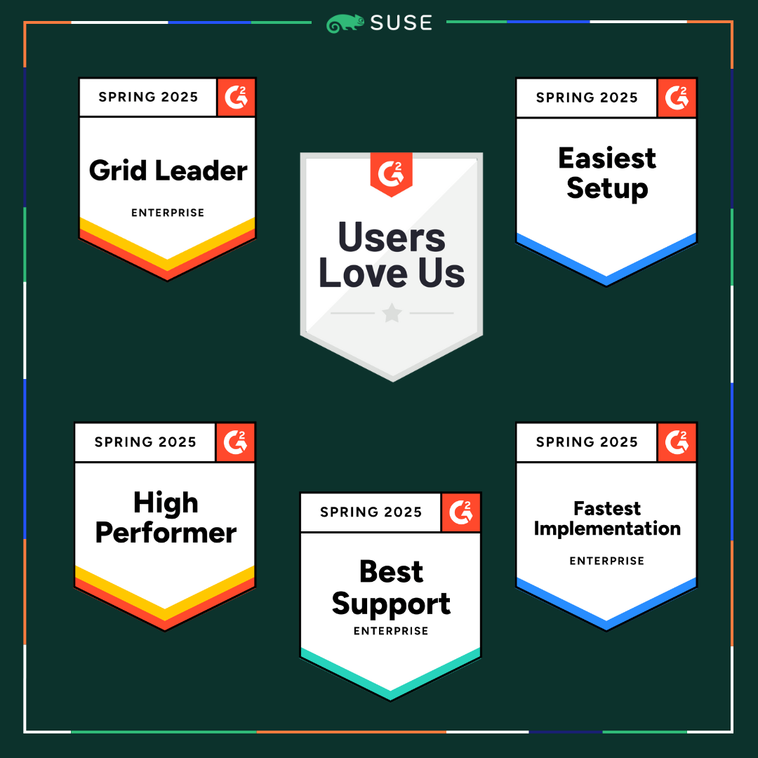 I’m excited to share that G2, the world’s largest and most trusted tech marketplace, has recognized SUSE’s solutions in its 2025 Spring Report. We received 48 badges across our portfolio for products including SUSE Rancher Prime, SUSE Observability, SUSE Multi-Linux Manager (formerly SUSE Manager) and SUSE Linux Enterprise. In addition, we were awarded the ‘Users Love Us’ badge for Rancher Prime, SUSE Observability, SUSE Linux Enterprise and SUSE Multi-Linux Manager.