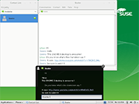 SUSE Linux Enterprise Desktop includes Pidgin for instant messaging. Pidgin supports popular public IM networks such as AOL, MSN, Jabber and Yahoo!. Pidgin also supports Novell® GroupWise® Instant Messaging, offering security and control by keeping the messaging system both encrypted and contained within the company.